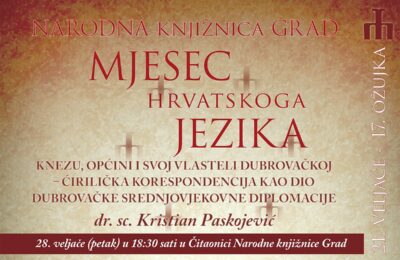 U sklopu manifestacije Mjeseca hrvatskoga jezika, Dubrovačke knjižnice organiziraju predavanje dr.sc. Kristiana Paskojevića pod...