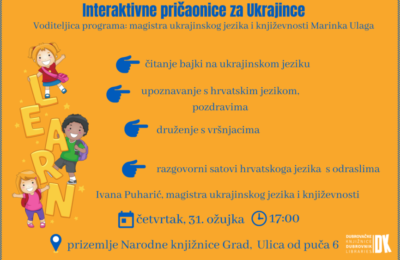 Odjel za djecu i mlade Dubrovačkih knjižnica organizira ciklus pričaonica za izbjeglice iz Ukrajine. Program će voditi magistra ukrajinskog jezika i...