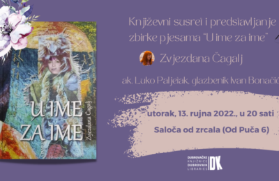 U suradnji s Dubrovačkim knjižnicama, književni susret i predstavljanje nove zbirke pjesama Zvjezdane Čagalj “U ime za ime” održat će se 13. rujna 2022., u...