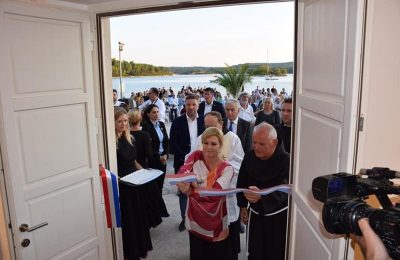 Predsjednica RH Kolinda Grabar Kitarović otvorila je u utorak umjetničku galeriju „Fra Bernardin Sokol“ u franjevačkom samostanu na Badiji, uz stalni postav...