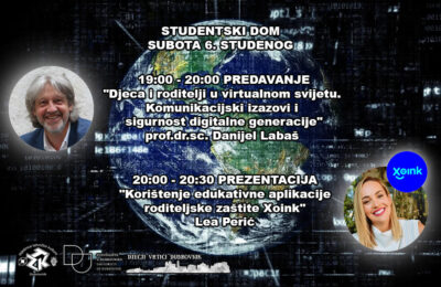 Najava predavanja “Djeca i roditelji u virtualnom svijetu. Komunikacijski izazovi i sigurnost digitalne generacije” i prezentacije edukativne aplikacije roditeljske zaštite
