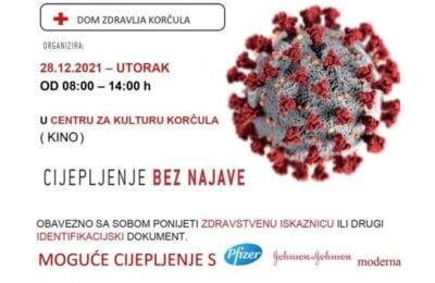 Dom zdravlja Korčula nastavlja s organiziranjem akcija cijepljenja za sve zainteresirane. Nove akcije najavljene su za sutra, u utorak, 28. prosinca 2021. u Centru za...