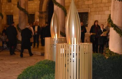 Na adventskom vijencu ispred Kneževa dvora večeras je upaljena druga adventska svijeća – svijeća mira. Svijeću je upalio nadbiskup mons Želimir Puljić.
