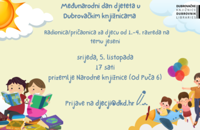 Odjel za djecu i mlade Dubrovačkih knjižnica povodom Međunarodnog dana djeteta, 5. listopada 2022., s početkom u 17 sati organizira pričaonicu/radionicu na temu...