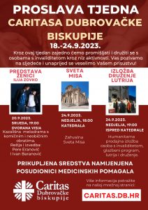Tjedan Caritasa Dubrovačke biskupije bit će obilježen nizom događaja u tjednu od 18. do 24. rujna, a glavni događaj održat će na samu obljetnicu utemeljenja u nedjelju 24. rujna. U središtu ovogodišnjeg tjedna bit će osobe s invaliditetom i deseta godina Caritasove Posudionice medicinskih pomagala.