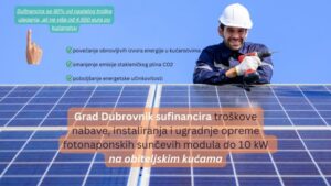 U cilju poticanja obnovljivih izvora energije, Grad Dubrovnik objavio je Javni poziv za sufinanciranje troškova nabave, instaliranja i ugradnje opreme fotonaponskih sunčevih modula do 10 kW u obiteljskim kućama na području Grada.