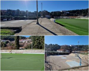 U sklopu projekta planira se urediti dio vanjskog igrališta namijenjenog za nogomet na način da se na postojećem terenu zamijeni dotrajala i krpana umjetna trava. Potrebno je formirati prostor klupe za igrače uz teren na sredini zapadnog dijela tribina, srediti zid koji čini okvir igrališta, kao i betonske tribine na koje se trebaju postaviti plastične klupe. Planirana je i zamjena dotrajale ograde oko terena, kao i visoke ograde iznad južnog dijela igrališta te zamjena dotrajalih i oštećenih golova. Kako bi teren bio kompletno definiran treba ga se označiti za igru malog nogometa i rukometa.