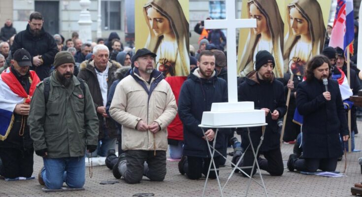 Svake prve subote u mjesecu se na glavnom zagrebačkom trgu okupljaju Vitezovi bezgrešnog srca Marijina pa zajedno kleče i mole se.
