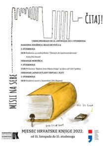 U petak, 4. studenoga s početkom u 17 sati, Ogranak Mokošica organizira treću radionicu “Bajkom kroz mjesec knjige” za djecu od 5 do 9 godina, a u 18:30 u Ogranku Lapad (Atlant centar, I. kat) Dubrovačke knjižnice će ugostiti nagrađivanu književnicu za djecu i mlade Jasminku Tihi-Stepanić. Na susretu će biti riječ o djelima namijenjenim mladima i onima koji se njima bave.