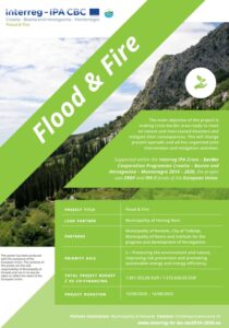 U sklopu projekta Flood and Fire u četvrtak, 26. svibnja i petak, 27. svibnja u održat će se dvodnevna vatrogasna vježba svih projektnih partnera. Prvi dio vježbe održava se u hotelu Croatia, dok je praktični dio, sljedeći dan predviđen na vježbalištu u Popovićima. Organizator je Općina Konavle, partner u projektu odobrenom u okviru INTERREG IPA Programa prekogranične suradnje Hrvatska- Bosna i Hercegovina- Crna Gora 2014.-2020.