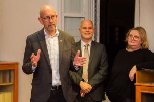 svaki vlasnik htio je na neki način obilježiti tu knjigu. Ti biljezi su nekad davno bili mala umjetnička djela, uglavnom su na njima bili prikazani ime, grb obitelji, monogram ili neka značajka po kojoj je vlasnik bio prepoznatljiv – uvodno je rekla ravnateljica Lucija Bjelokosić i zahvalila Lasiću, velikom zaljubljeniku u knjigu i dugogodišnjem članu Knjižnice, i svima koji su došli na otvorenje te pozvala Nikšu Matića da reče nekoliko riječi.