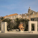 Tražeći lokaciju za mjesto na kojem bi se radio spomenik, od nekoliko lokacija odabrana je lokacija zapadne rive u Korčuli. Kameni grad, koji se ponosi svojom arhitekturom, jedinstvenog oblika i tlocrtnog rasporeda ulica popločanih kamenom, u kojem se ističu brojne građevine, palače, crkve, kuće, Gradski muzej, riznica, katedrala sv. Marka, kule, stepeništa, trgovi i brojni drugi objekti u starogradskoj jezgri grada. Sve navedeno učinjeno je od kamena u kojem su vrijedni korčulanski klesari iskazivali svoje umijeće obrade kamena kroz portale, zvonike, rozete, bifore, stepeništa, balkone ili bilo koje elemente u graditeljskom smislu potencirajući i njegujući tradiciju kamena. Brojna imena poznatih majstora kamena, svjedoče da su korčulanski majstori klesari bili visoko cijenjeni u gradu Korčuli ali i znatno šire. Na što smo osobito ponosni jer kamen je naš otok, od kamena je ono što traje i ostaje.