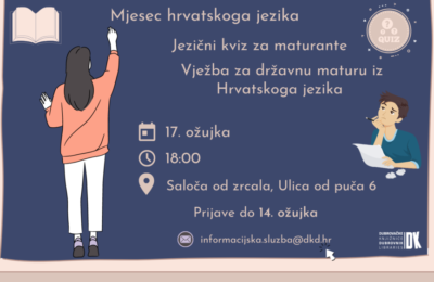 Za kraj Mjeseca hrvatskoga jezika, u četvrtak 17. ožujka održan je online jezični kviz za maturante i sve ljubitelje jezika. Natjecatelji su pokazali široko znanje u različitim jezičnim disciplinama, od pravopisa do povijesti jezika.