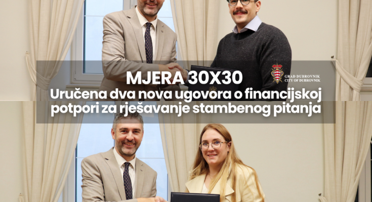 U okviru Mjere 30 x 30, gradonačelnik Grada Dubrovnika Mato Franković uručio je danas dva nova ugovora o financijskoj potpori za rješavanje stambenog pitanja mladih obitelji.