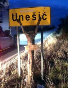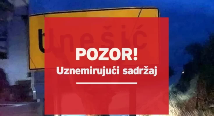 Noćas su prolaznici državnom cestom u Šibensko-kninskoj županiji bili zatečeni prizorom obješenog vuka na prometnom znaku na ulazu u mjesto Unešić.