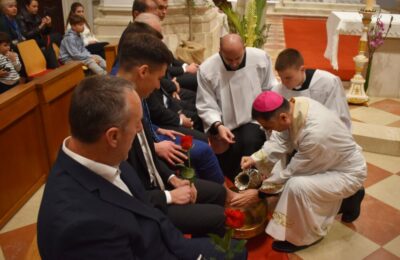 Danas je Veliki četvrtak, kojim počinje vazmeno trodnevlje. Spomendan je Isusove posljednje večere. Na Veliki četvrtak blagoslivljaju se ulja za slavljenje sakramenata: katekumensko ulje, ulje za bolesničko pomazanje i sveta krizma. Održava se i tradicionalni obred pranja nogu.