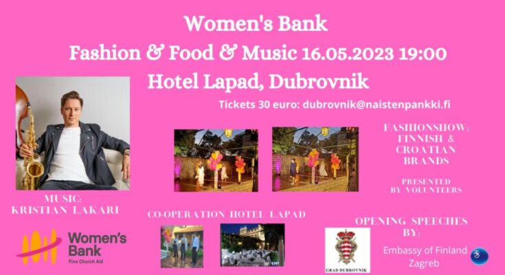 Women’s Bank Dubrovnik i ove godine organizira humanitarnu večeru uz bogati program ispunjen modom, glazbom i zabavom. Zbog velikog interesa, bit će dva događaja – 16. i 17. svibnja s početkom u 19 sati u hotelu Lapad. Prihodi od prodaje ulaznica i lutrije, kao i svi dobrovoljni prilozi bit će namijenjeni trenutnim projektima Women’s Bank-a (grupe štednje i kreditne seoske banke, obrazovanje i osposobljavanje za poduzetništvo, podrška pristupu tržištu, obuka građanskih vještina, ženske zadruge i slično) u Kambodži, Keniji, Mijanmaru, Nepalu i Ugandi.