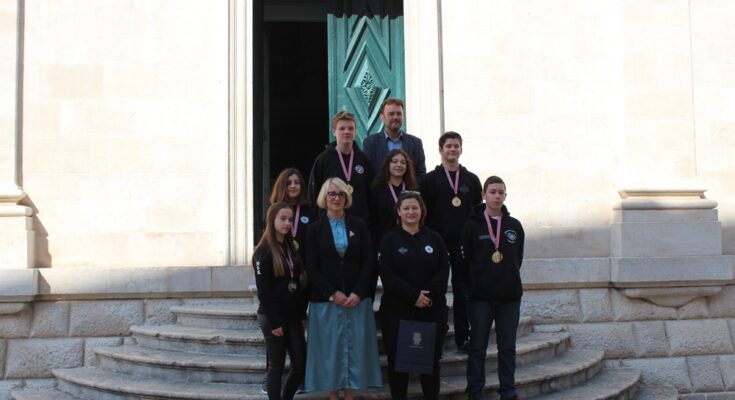 Zamjenica gradonačelnika Grada Dubrovnika Jelka Tepšić i zamjenik pročelnika Upravnog odjela za obrazovanje, šport, socijalnu skrb i civilno društvo Miho Katičić povodom osvajanja trideset sedam medalja na državnom prvenstvu primili su danas u Maloj vijećnici mlade članove Taekwondo kluba Shark i njihovu trenericu Sanju Rosandić.